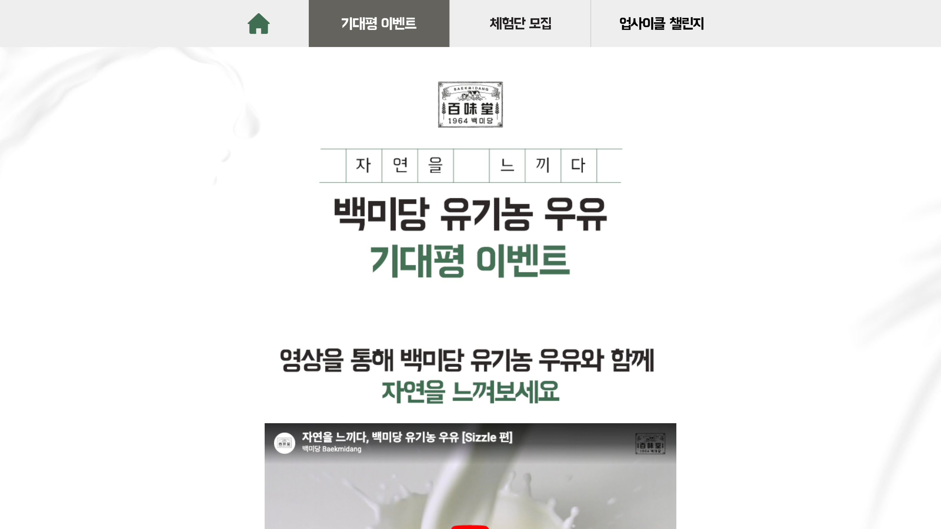 백미당 유기농 우유 이벤트 페이지 제작