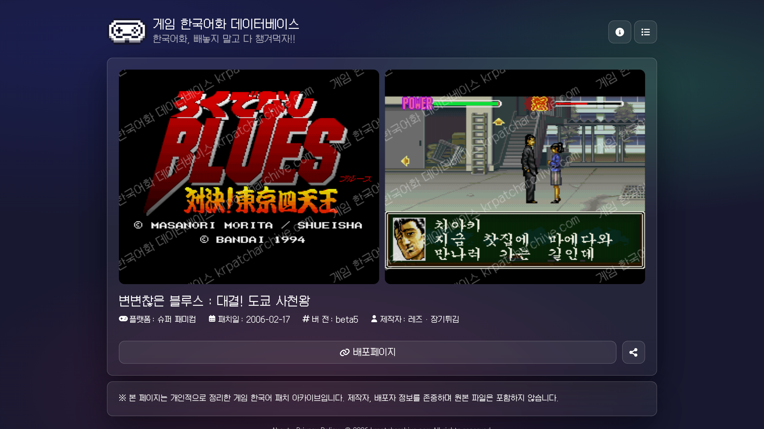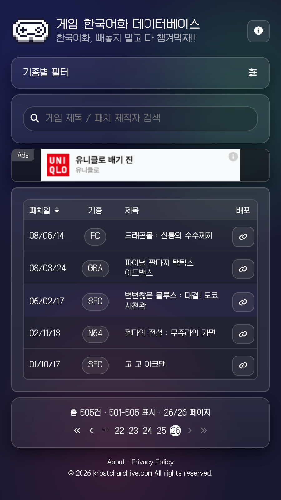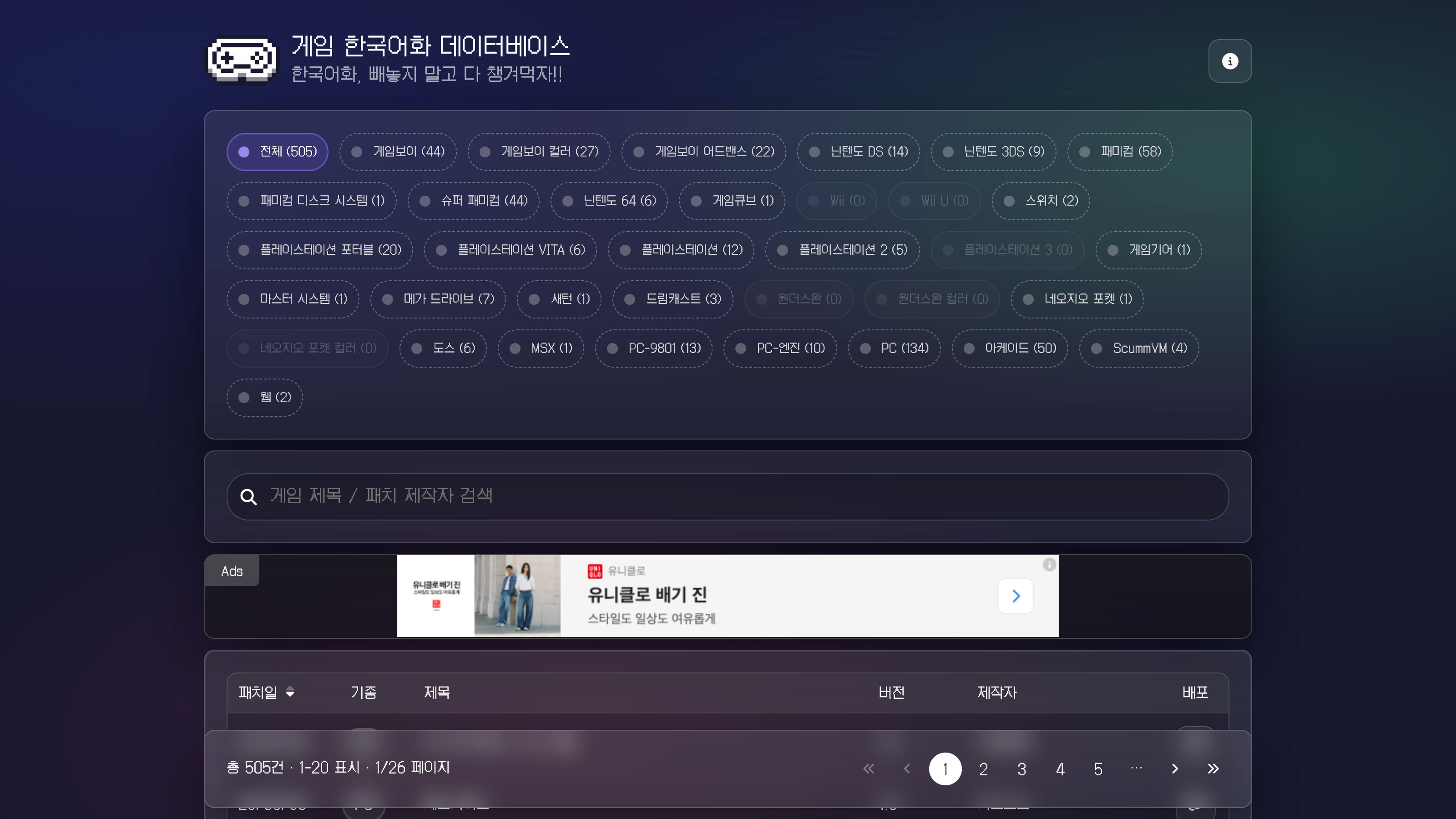 공식 한국어화가 이루어지지 않은 게임들의 사용자 한국어화 작업 정보를 한 곳에서 확인할 수 있도록 구축한 아카이빙 사이트입니다.