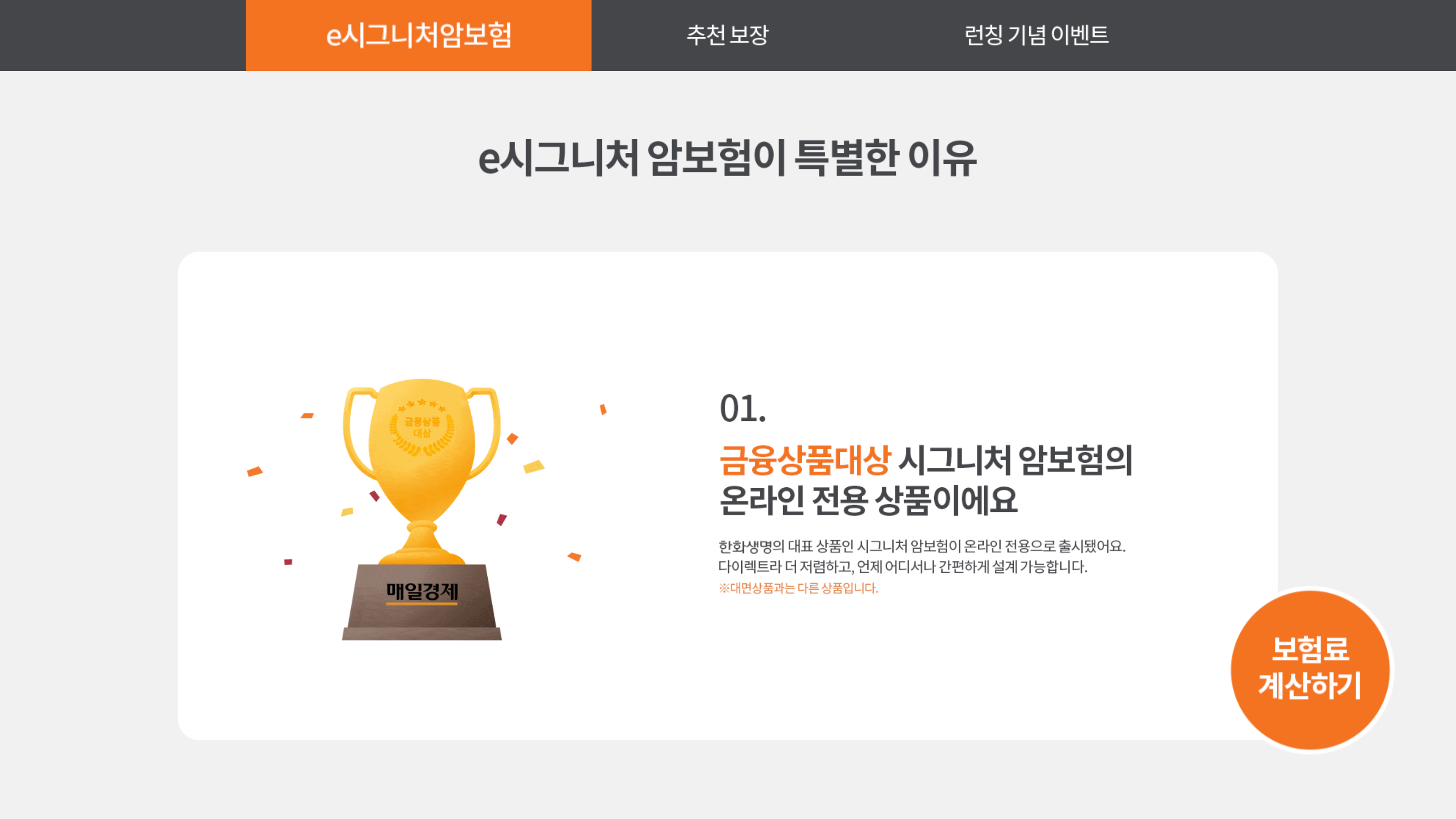 한화생명 다이렉트 e시그니처암보험