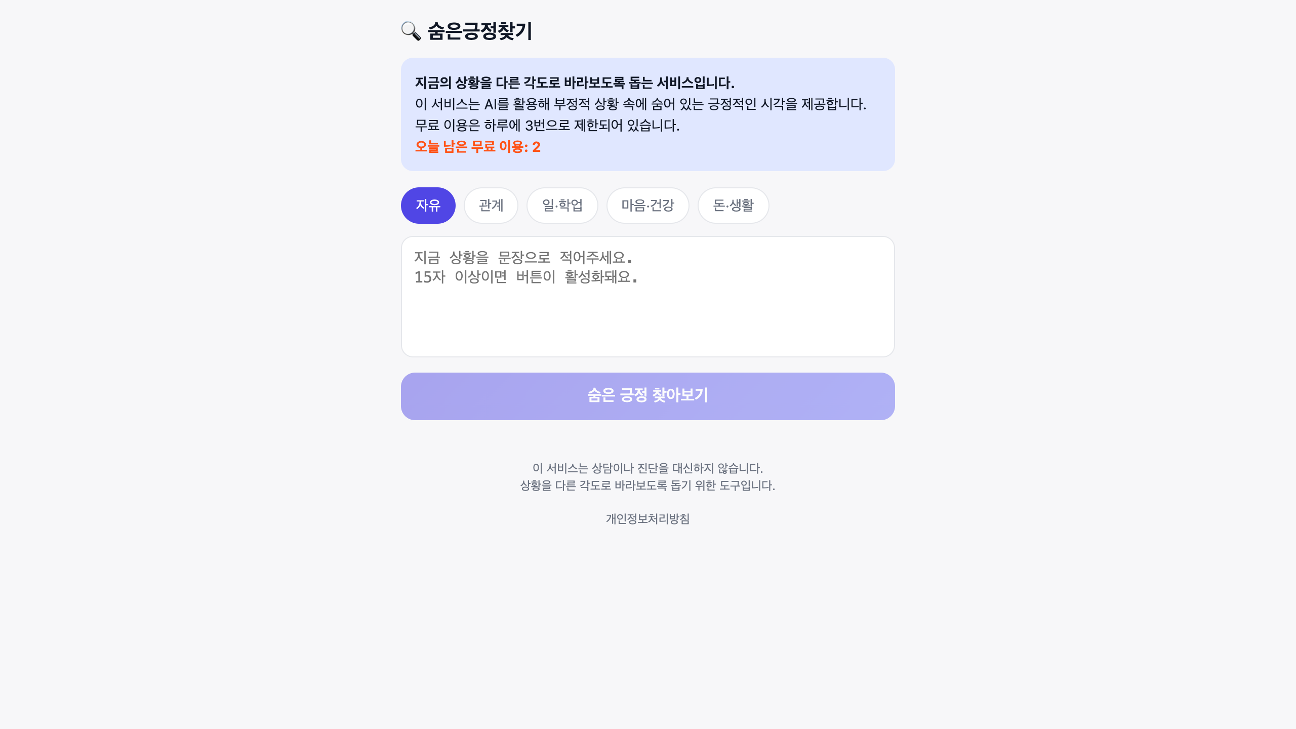 토큰 사용 비용을 고려하여 하루 이용 횟수를 제한하도록 설정했습니다.